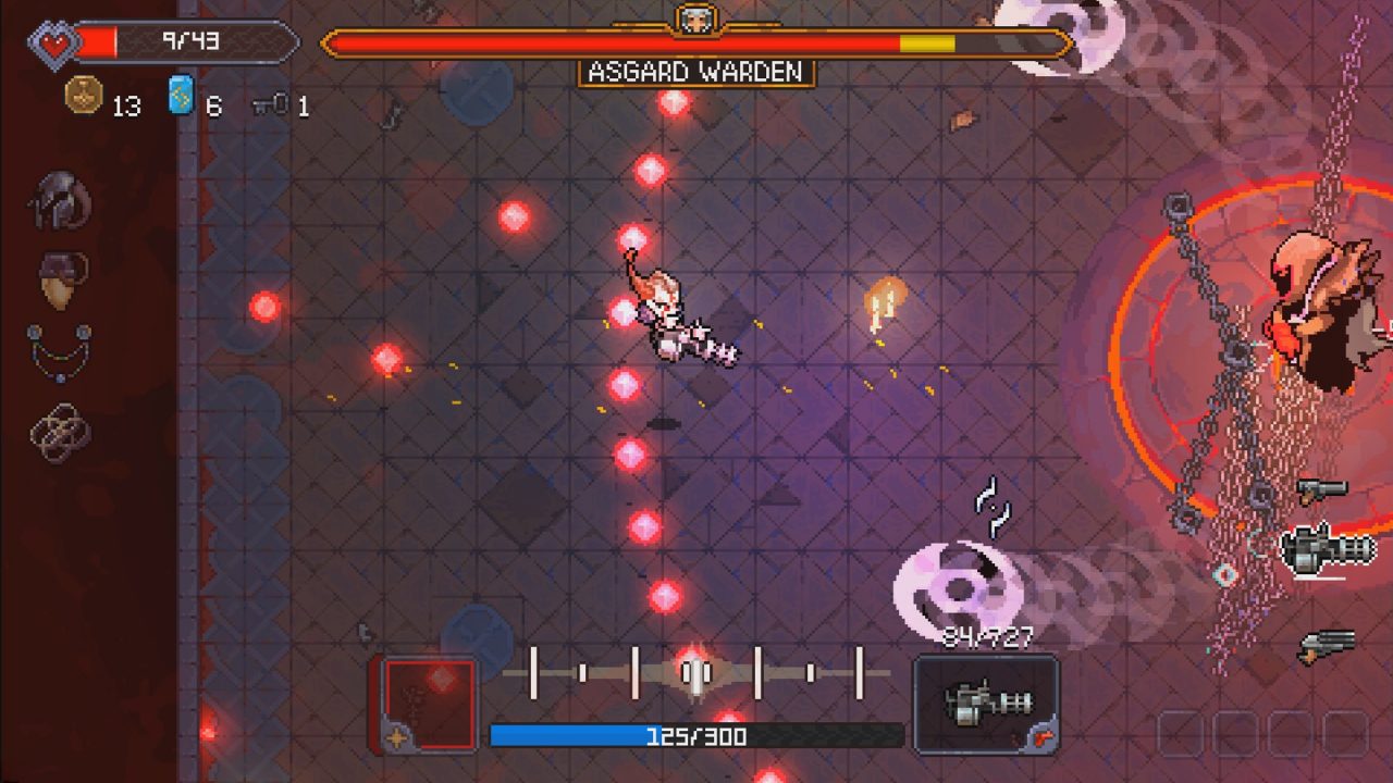 Y es que en BPM Bitcrushed irás visitando diferentes mazmorras para eliminar a todos los enemigos, encontrarás nuevas mejoras o reliquias, rescatarás a algunos NPC o a nuevos personajes jugables, harás misiones secundarias, lucharás contra jefes finales… ¡pero todo ello con frenetismo y con muchísimo ritmo! Al fin y al cabo, tener una jugabilidad distinta es una de las mejores bazas que tiene BPM Bitcrushed respecto al resto de juegos del género. Si no has jugado a un shooter rítmico hasta el momento, aquí tendrás que estar pendiente del ritmo de la canción que esté sonando para saber cómo tienes que disparar, cuándo tienes que recargar, cómo hacer una esquiva perfecta y también para adivinar cómo serán los ataques enemigos. No te preocupes, porque en todo momento tendrás la ayuda de la barra de sincronía (ubicada en la parte inferior de la pantalla) para poder ver cuál será el momento apropiado para ejecutar el movimiento que desees. Sabiendo eso, el resto será dejarte llevar en unas situaciones donde las balas bailarán por todo el escenario, nunca mejor dicho. A pesar del cambio de estética, he de confirmarte que el concepto que ya se vió en el primer BPM funciona a las mil maravillas en este BPM Bitcrushed.