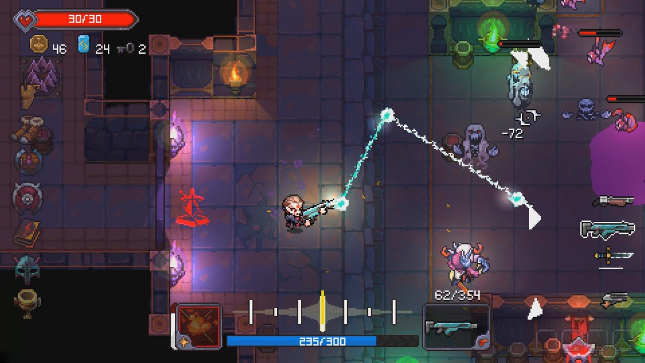 Mismos creadores, mismo concepto, pero aquí encontrarás un cambio bastante radical. Y es que la gente de Awe Interactive ha decidido que BPM Bitcrushed mantenga la misma jugabilidad de BPM: Bullets Per Minute pero que ofrezca una nueva identidad visual mediante una estética retro pixel en la que predominará una cámara de vista cenital. Sinceramente, el cambio le sienta bastante bien al juego, sobre todo porque a simple vista te recordará a otros referentes similares como pueden ser Enter The Gungeon o Nuclear Throne, los cuales también se han tenido en cuenta para la estructura de este BPM Bitcrushed.